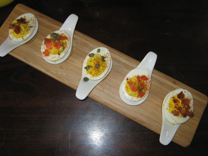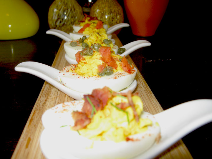 Now comes the part where we turn deviled eggs to the bright side. The secret’s in the toppings. The right toppers take the evil out of the eggs and make them, well, heavenly!