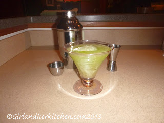 In keeping with the festive season, I offer you a choice of green and red cocktails for this first holiday post. I know you will enjoy them both. They are quick to make and take a minimal amount of ingredients (liquor can be expensive!) and your guests will love them, too. Enjoy!