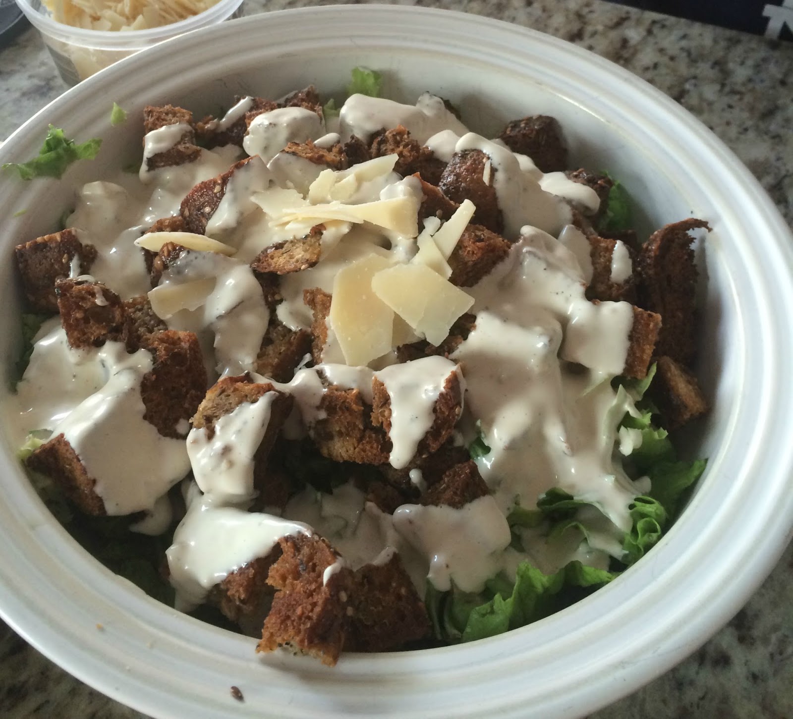 Well, bread…but that is another story. I mean…everything goes better with bread. Lucky for you, this salad comes covered in croutons! I have a recipe for my homemade croutons coming, but in the meantime, your favorite store bought ones will do!